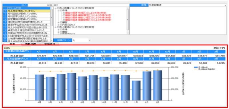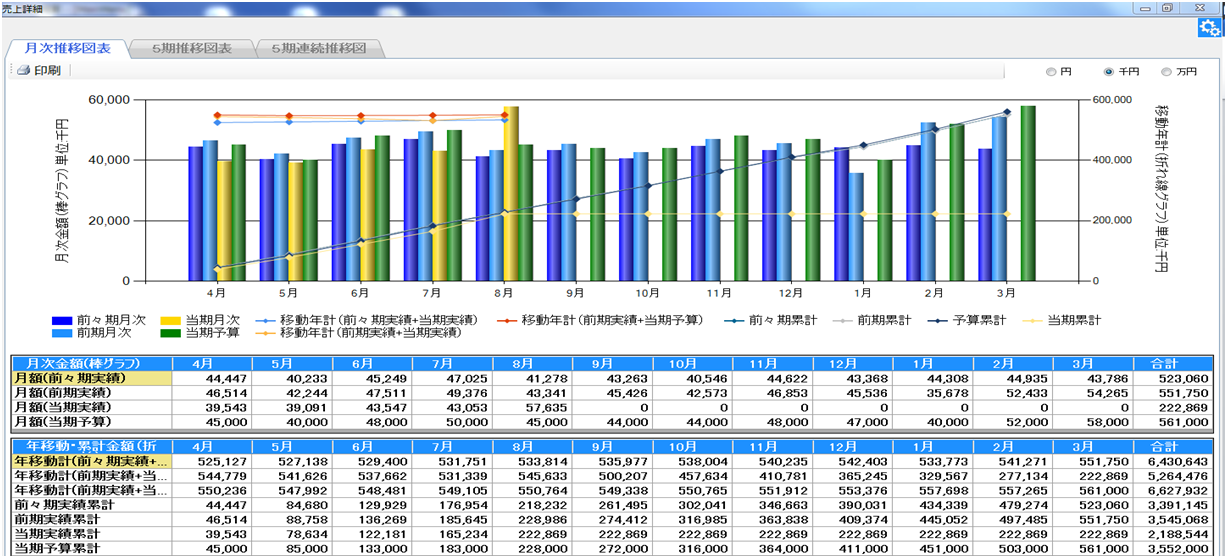 直感的に行えます。また、直近の12か月の売上合計、つまり移動年計を見ることで、季節要因を排除した「本当の売上傾向」がわかります。