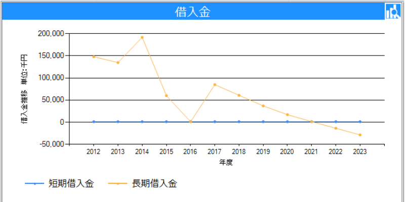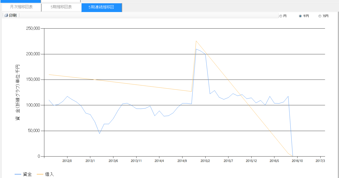 借入金の推移もグラフで表示されますので、ひと目で借入金の推移が把握できます。