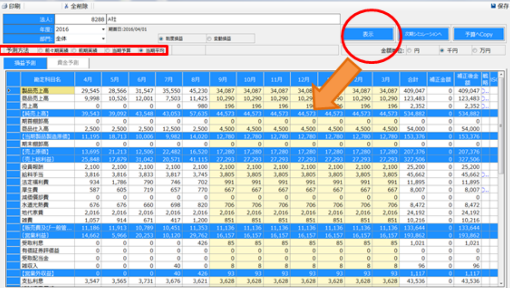 利益計画は、過去の財務データをもとに、売上と経費を増減させ、簡単に予算の作成ができます。