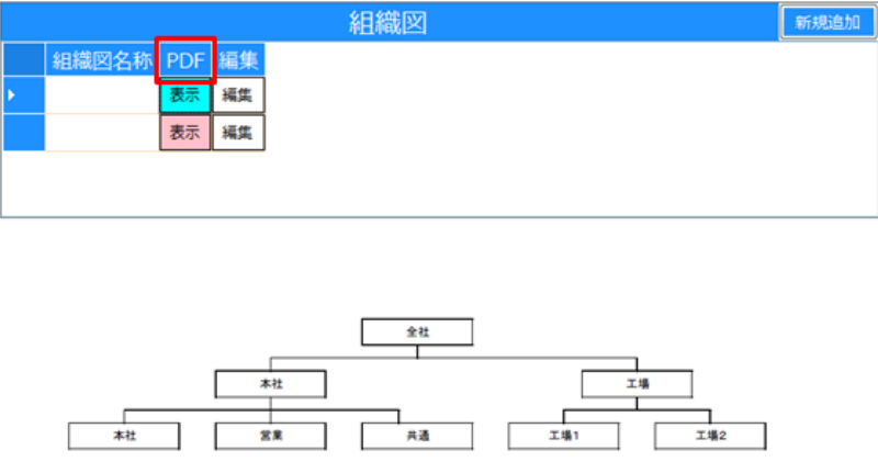 会社の組織図をPDFファイル形式で保存・表示ができます。