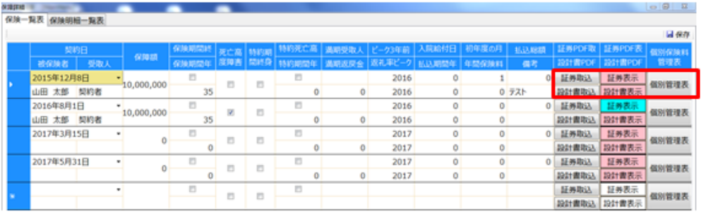また、保険会社より発行される保険証券や設計書をPDFファイル形式で取り込むこともできます。