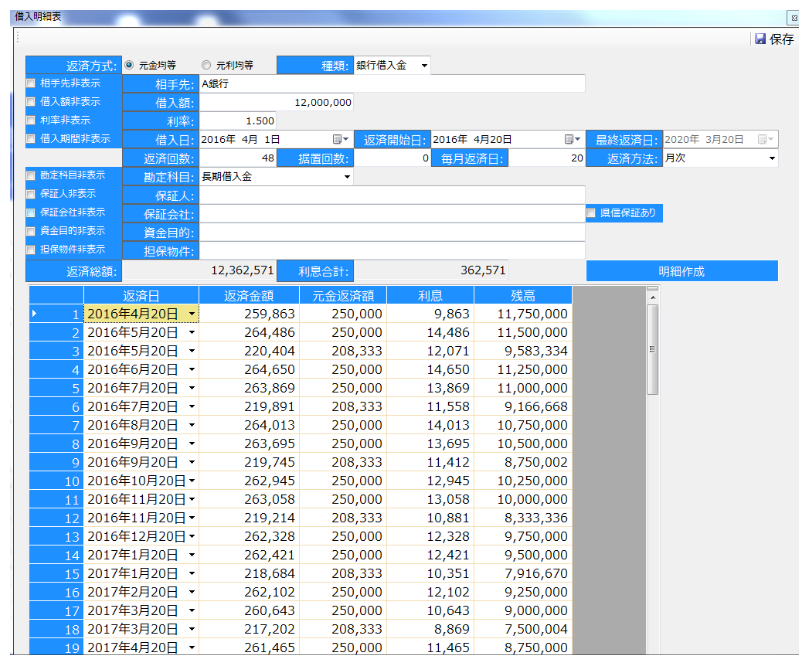 借入明細表の入力が終わったら、借入金一覧表でどれだけ借入をしているのか把握しましょう。