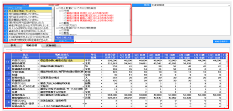 バランススコアカードでは、戦略マップにて作成した戦略目標に対しての具体的な実施策を作成しましょう。