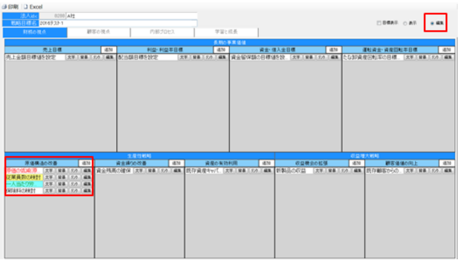 編集で戦略目標の文字や背景に色付けして重要な戦略目標を強調しておきましょう。