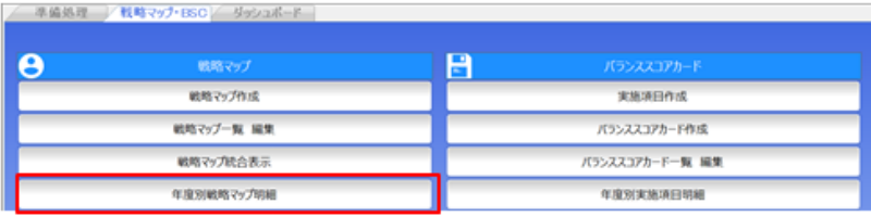 作成した戦略目標を一覧で表示したい場合には、年度別戦略マップをクリックしましょう。