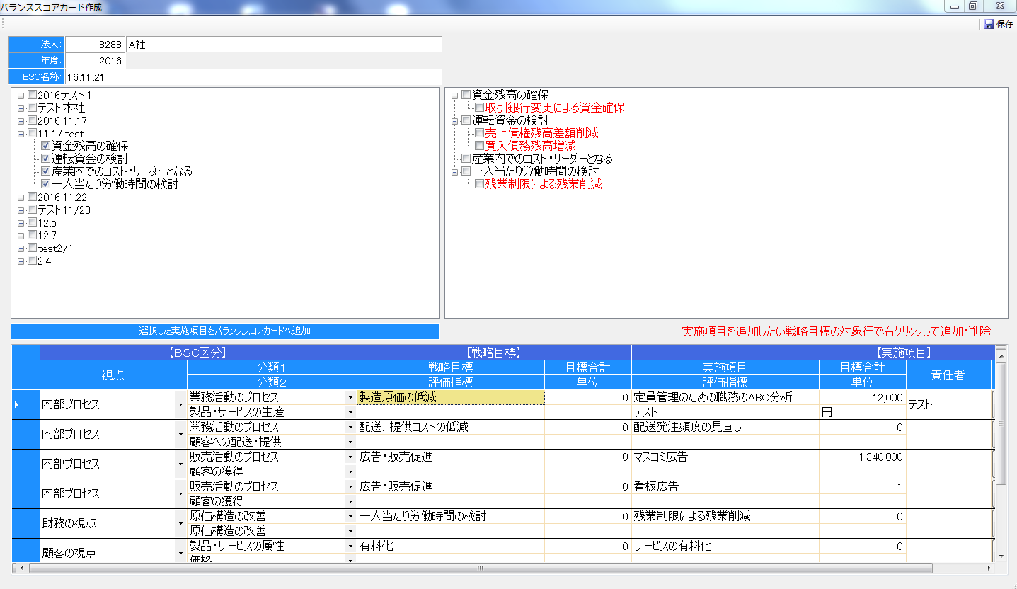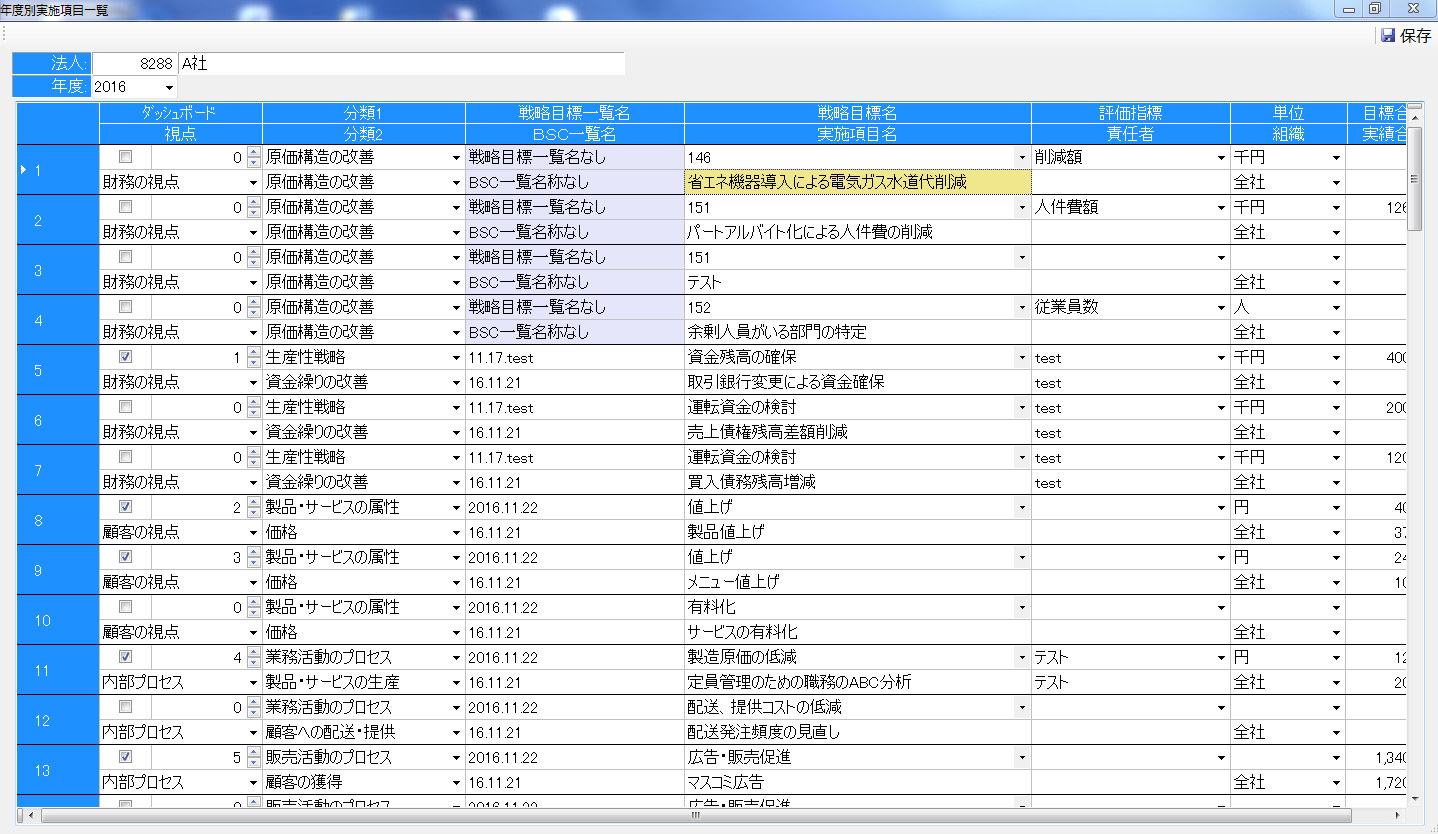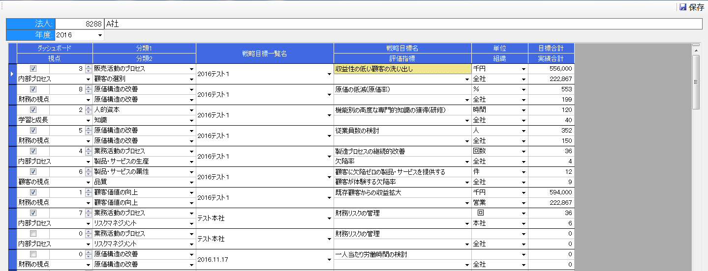 ・バランススコアカード一覧編集