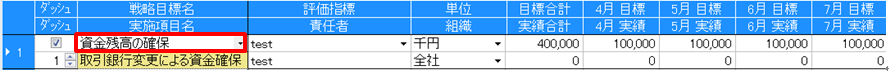 作成したはずの実施項目が表示されない場合には、実施項目の戦略目標名が入力されているか確認してください。
